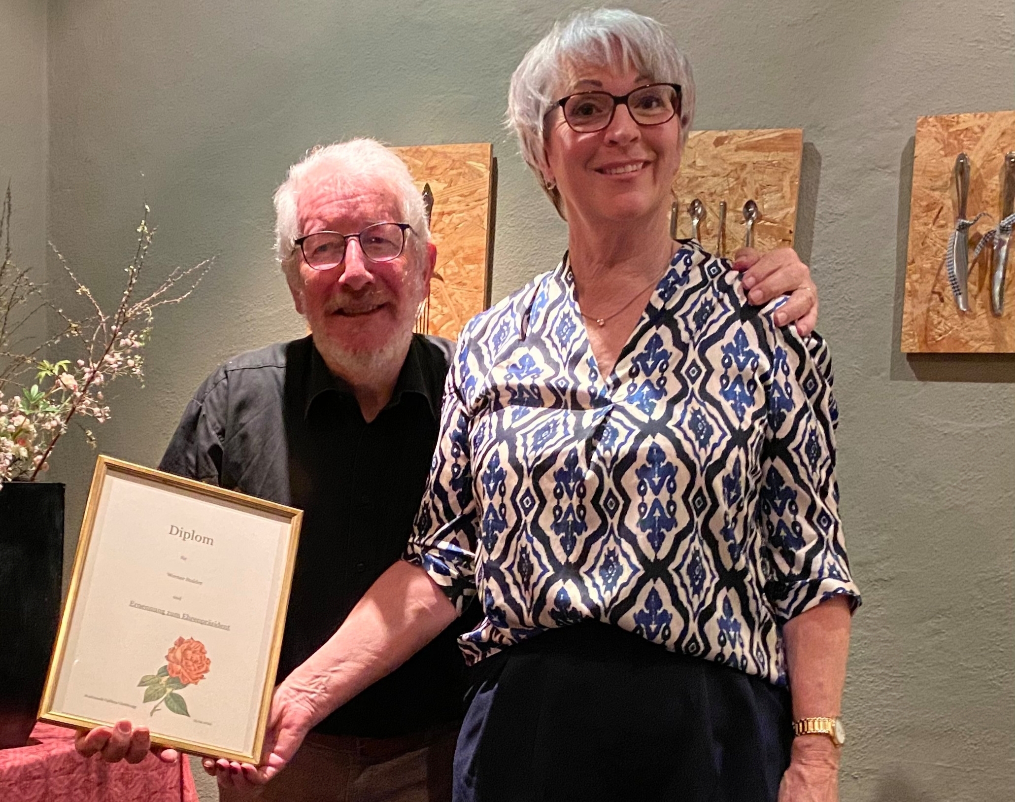 An der Generalversammlung der Stadtmusik Opfikon vom 15. April wurde unser langjähriger Präsident Werner Stalder geehrt: Nach 3 Jahren im Vorstand als Sekretär, 9 Jahren als Vizepräsident und 12 Jahren als Präsident, überreichten wir ihm zum Dank ein Diplom und ernannten Werner zum Ehrenpräsidenten.
