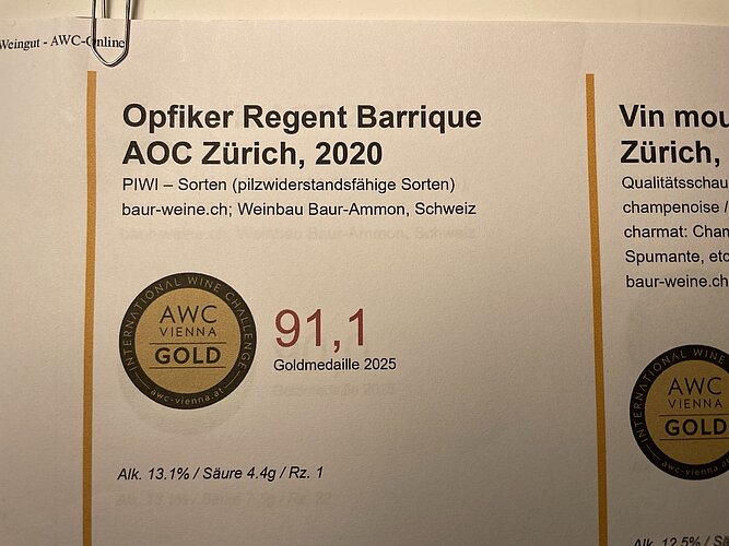 Einmal Gold und zweimal Silber lautet das Verdikt der Weinverkostung von AWC Vienna 2025. Damit sind nun alle Weine der Rebberg-Genossenschaft Opfikon mindestens einmal ausgezeichnet worden. Und man kann sie auch beziehen und seine Gäste überraschen!