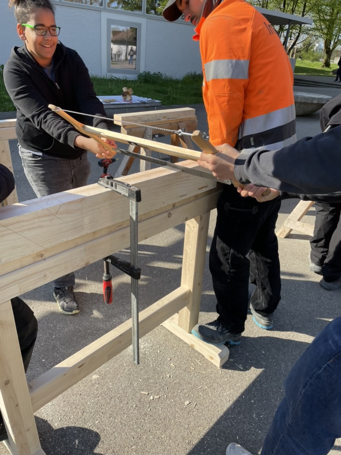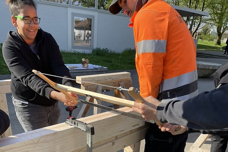 In der Baubranche arbeitet man wörtlich Hand in Hand. Diese und viele andere Erfahrungen machten die Schülerinnen und Schüler an diesem Morgen. Bilder zvg