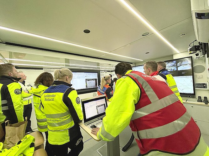 Diese umfassen viel mehr als das Löschen von brennendem Kerosin. Thomas Hauert gibt ein Beispiel: «Neben der Berufsfeuerwehr des Flughafens wird auch die Ortsfeuerwehr der betroffenen Gemeinde aufgeboten sowie einer oder mehrere der Stützpunkte in Opfikon, Wallisellen, Kloten und Bülach.» Jedes Jahr werden deshalb zwei dieser Stützpunkte ebenfalls zum Üben aufgeboten. Dieses Jahr waren Opfikon und Wallisellen an der Reihe, die mit acht bis zehn Offizieren zugegen waren und die auch ihre sogenannte Führungsunterstützung dabeihatten: Leute, die Listen, Journale und Karten nachführen. Die Kommandofahrzeuge der verschiedenen Organisationen werden dabei meist in Hufeisenform aufgestellt; so kann die Feuerwehroffizierin beim Einsatzleiter Sanität direkt nachfragen.