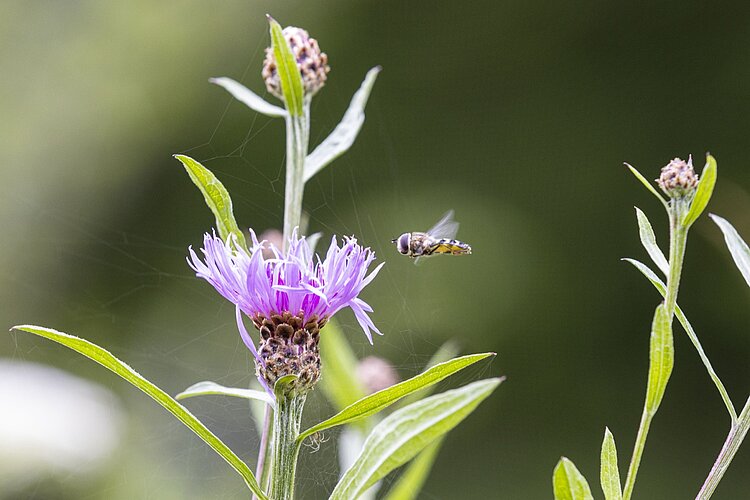 Dort, wo es vor der Aufwertung noch eintönig aussah, sind nun zahlreiche bunte Blumen zu bestaunen. Bis zu 44 verschiedene Pflanzenarten haben sich angesiedelt. Und auch die Tierwelt findet Gefallen an der neuen Blütenpracht – es herrscht reger Flugverkehr über den neuen Wildblumenwiesen.