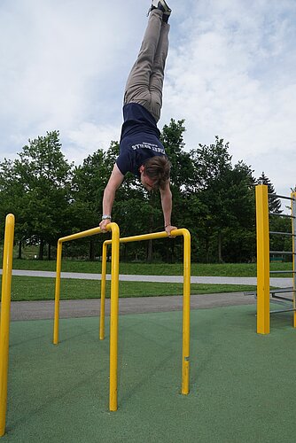 Schweizer Meister wird man nicht von heute auf morgen. Doch mit gut zweieinhalb Jahren Vorbereitungszeit schaffte es Andrin Mayer doch bemerkenswert schnell. Das ist auch ein Merkmal der Sportart, die er für sich entdeckt hat, bei der man mit entsprechendem Einsatz ziemlich bald gut Resultate erzielen kann: Street Workout oder auch Calisthenics (siehe Box). Ganz grob könnte man es Kraftübungen ohne Kraftraum und Fitnesscenter nennen. Es geht darum, kraftraubende Übungen mit dem eigenen Körpergewicht (und manchmal mehr) zu vollführen – so schnell, aber auch so perfekt wie möglich.