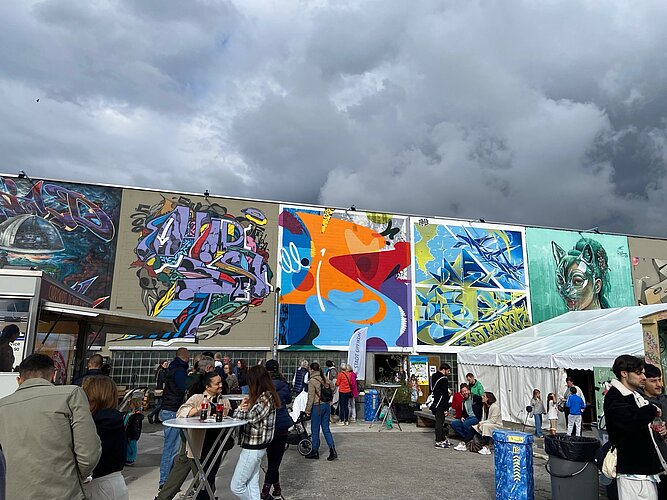 Das 10. Food-Festival Opfikon fand zum ersten Mal im Graffland statt. So gesellten sich zu bunten Kunstwerken aus aller Welt ebensolche Gerichte.