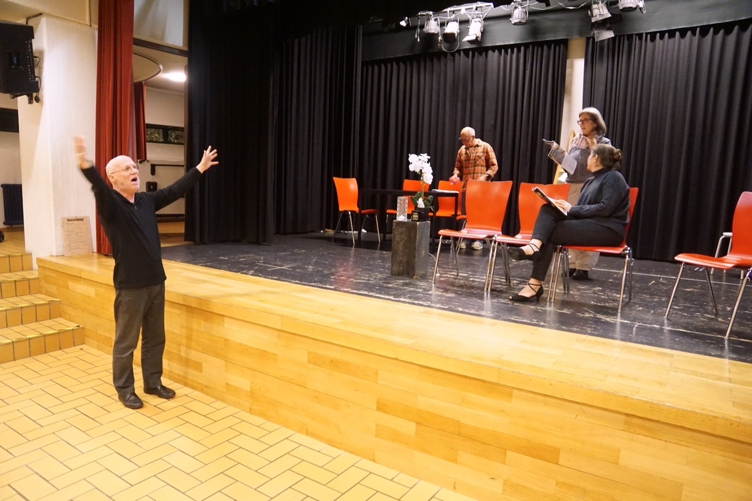 Zuvor hat sich das Kreativteam der Theatergruppe in verschiedene Stücke eingelesen, und Judy Cahannes Begni und Susanne Hottinger aus dem Kreativteam haben sich im Frühling 2024 die Inszenierung von Peter Locher im aargauischen Widen angesehen und waren davon sehr angetan.