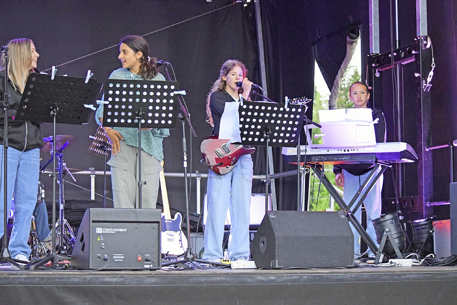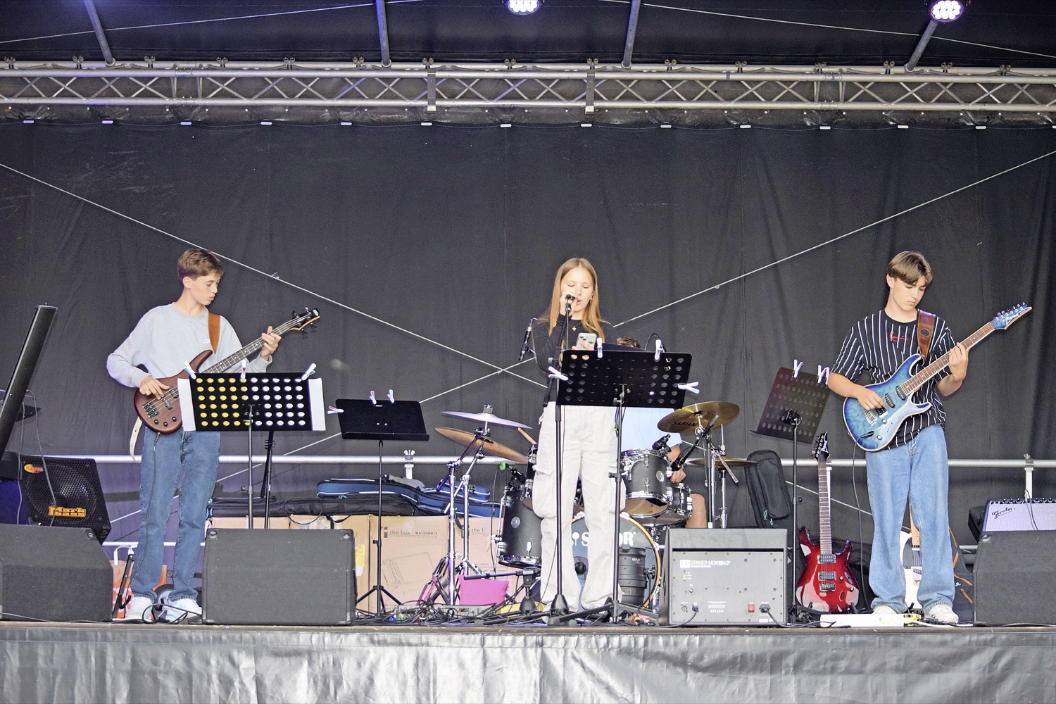 Two and a Half Twins, Sweetbeat, Young Blood, Teenetus, Tuesday Jam, The Futures und The Cruisers hiessen die Bands, die am Samstagabend auf der Open-Air-Bühne des Musikwerkes Kloten standen. Alle waren Nachwuchsmusikerinnen und -musiker, die den Besuchenden zum Semesterabschluss ihr Können präsentierten. Neben Evergreens aus den 70er- und 80er-Jahren präsentierte der Nachwuchs auch Musik aus den Bereichen Pop, Rock und Alternative, aber auch Songs aus der aktuellen Hitparade. Den Freunden, Familien und Bekannten, die trotz des Herbstwetters an diesen Sommertagen den Weg ins Musikwerk fanden, war die Begeisterung über die Darbietungen anzumerken. Es wurde getanzt, mitgesungen und angefeuert.