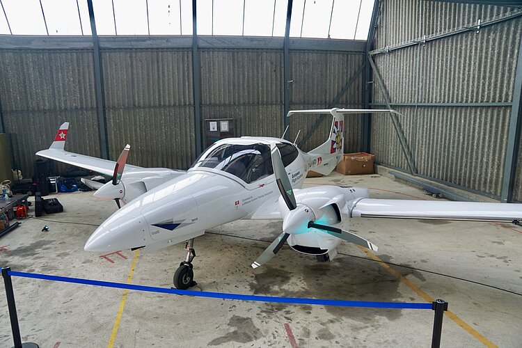 Die Diamond DA42 VI verfügt über vier Sitze sowie zwei Kolbenmotoren, die Propeller antreiben. Die neuen Maschinen verfügen nicht nur über eine ähnliche Instrumentierung wie die grossen Flugzeuge, sondern sogar über mehr Möglichkeiten. Denn hier würden Neuerungen einige Zeit früher eingebaut als in den grossen Linienmaschinen, so Flugschulleiter Mangasser. In dieser Version verbessert wurden unter anderem Navigation und Wetterradar, um den Instrumentenflug zu üben. Die Fluggeräte sind ausserdem deutlich leiser und effizienter, was den Treibstoffverbrauch angeht – sehr zur Freude der Anwohnerinnen und Anwohner in Grenchen. Dessen Gemeindepräsident François Scheidegger betonte vor der Taufe dennoch, wie verbunden und stolz sie auf ihren Flughafen seien.