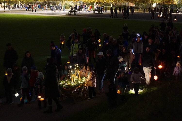 Am «Räbeliechtli-Umzug» im Glattpark nahmen über 400 Kinder und Erwachsene teil. Die Stadtmusik markierte dabei zum ersten Mal den musikalischen Auftakt – und will nächstes Jahr wiederkommen.