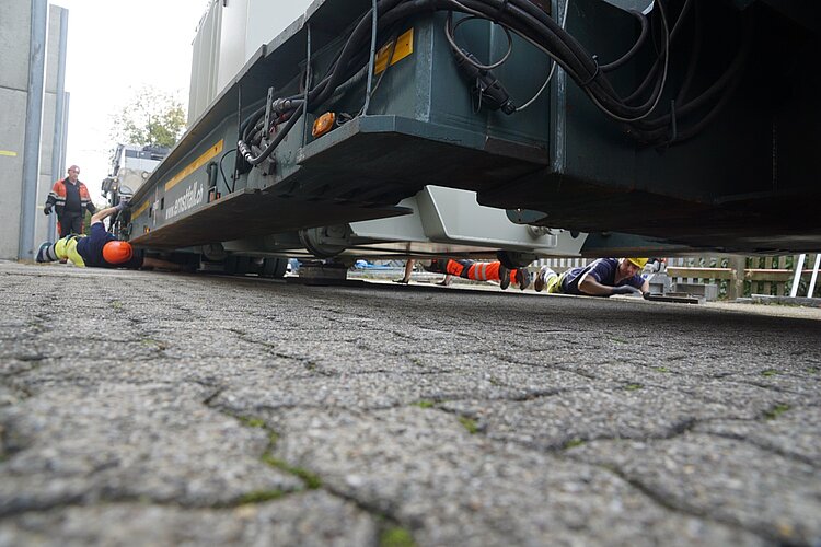 Beim Unterwerk in Opfikon manövriert er seinen Anhänger zentimetergenau über die Schienen neben dem Gebäude. Darauf wird der Transformator, der über passende Räder verfügt, dann direkt vom komplett teilbaren Spezialanhänger abgesetzt und mittels Motorwinde und Drahtseil seitwärts an seinen neuen Bestimmungsort verschoben. Das erneute Zusammensetzen des leeren Anhängers braucht dabei fast genauso viel Zeit wie das Absetzen der Fracht.