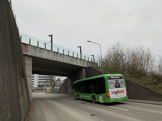Denn die Haltestelle Balsberg (die per definitionem keinen Bahnhof darstellt) ist nur von einer Seite her erschlossen. Wer auf das einseitige Perron gelangen will, muss, von besagtem «Hardacher» her kommend, erst entlang der Balz-Zimmermann-Strasse unter dem Gleis hindurchgehen und auf der anderen Seite hochsteigen. Auch der Umstieg von den Postautokursen auf der Flughofstrasse, die ebenfalls am «Bahnhof Balsberg» halten, ist weiter als vermutet.