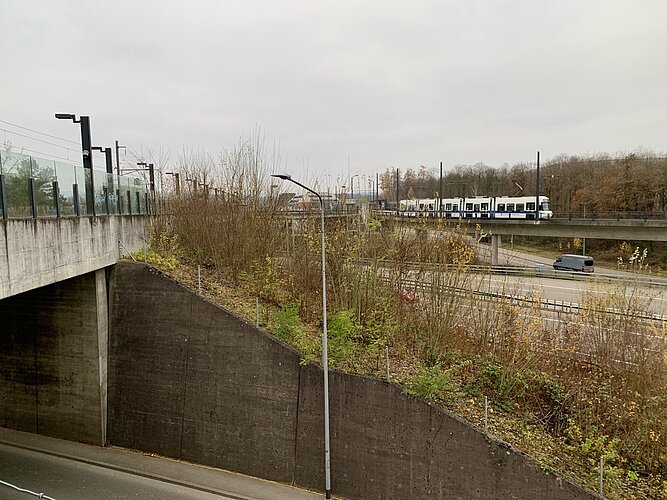 Bislang war die Haltestelle Balsberg eine sehr einseitige Sache: Sie liegt an der Klotener Grenze zu Opfikon, war jedoch nur von der Flughafenseite her erschlossen. Das soll sich mit dem Ausbau auf Doppelspur und einem abgewendeten Gerichtsverfahren nun ändern.