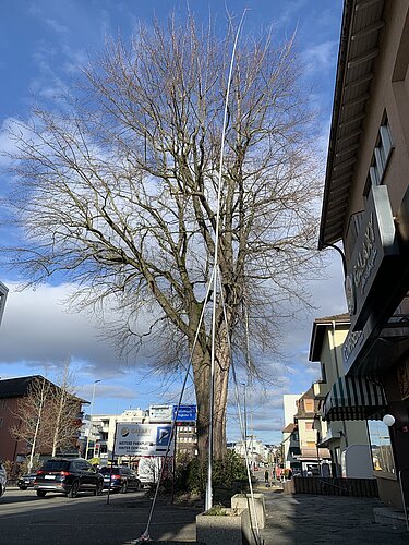 Im Zuge dessen will der Stadtrat mit Beschluss vom 16. Januar zwei Bäume aus dem Inventar entlassen: Die Birke sowie der Birnbaum stehen oder vielmehr standen beim Kindergarten an der Dorfstrasse 27. Der Birnbaum wurde aus Sicherheitsgründen bereits gefällt. Die Birke gilt aufgrund fortschreitender Fäulnis sowie der absterbenden Krone ebenfalls als Sicherheitsrisiko.
