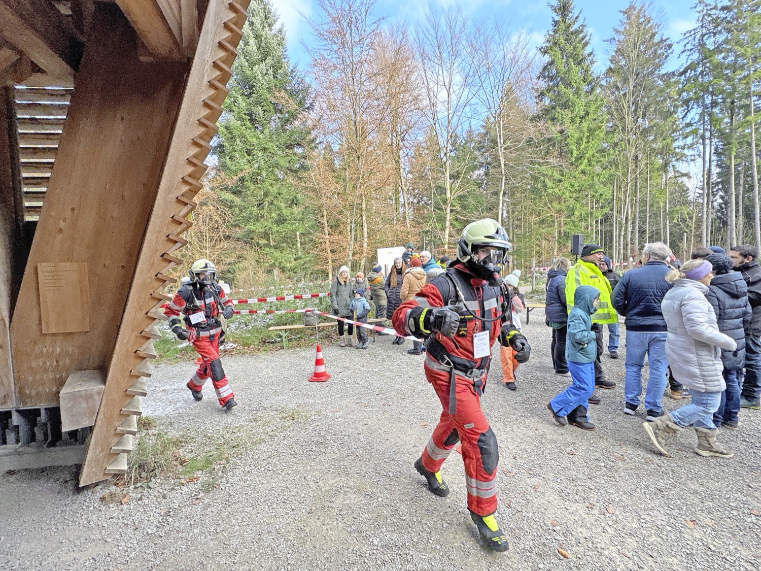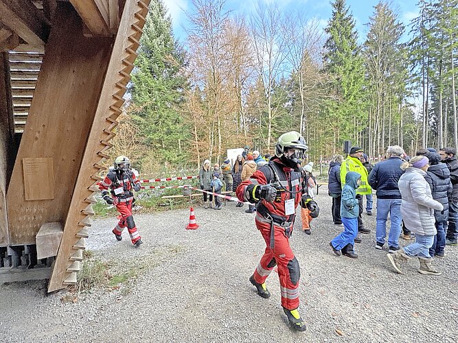 209 Stufen, 25 Kilo Zusatzgewicht und viel Kameradschaft: 74 Feuerwehrleute stellten sich am Hardwald-Tower-Runder doppelten Turmbesteigung. Neben Durchhaltewille ging es vor allem auch um Kameradschaft.