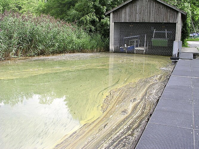 Blaualgen können in unseren Seen und Fliessgewässern gefährlich sein. Hier sind wichtige Informationen undVerhaltensempfehlungen, um die Gesundheit von Mensch und Tier zu schützen.