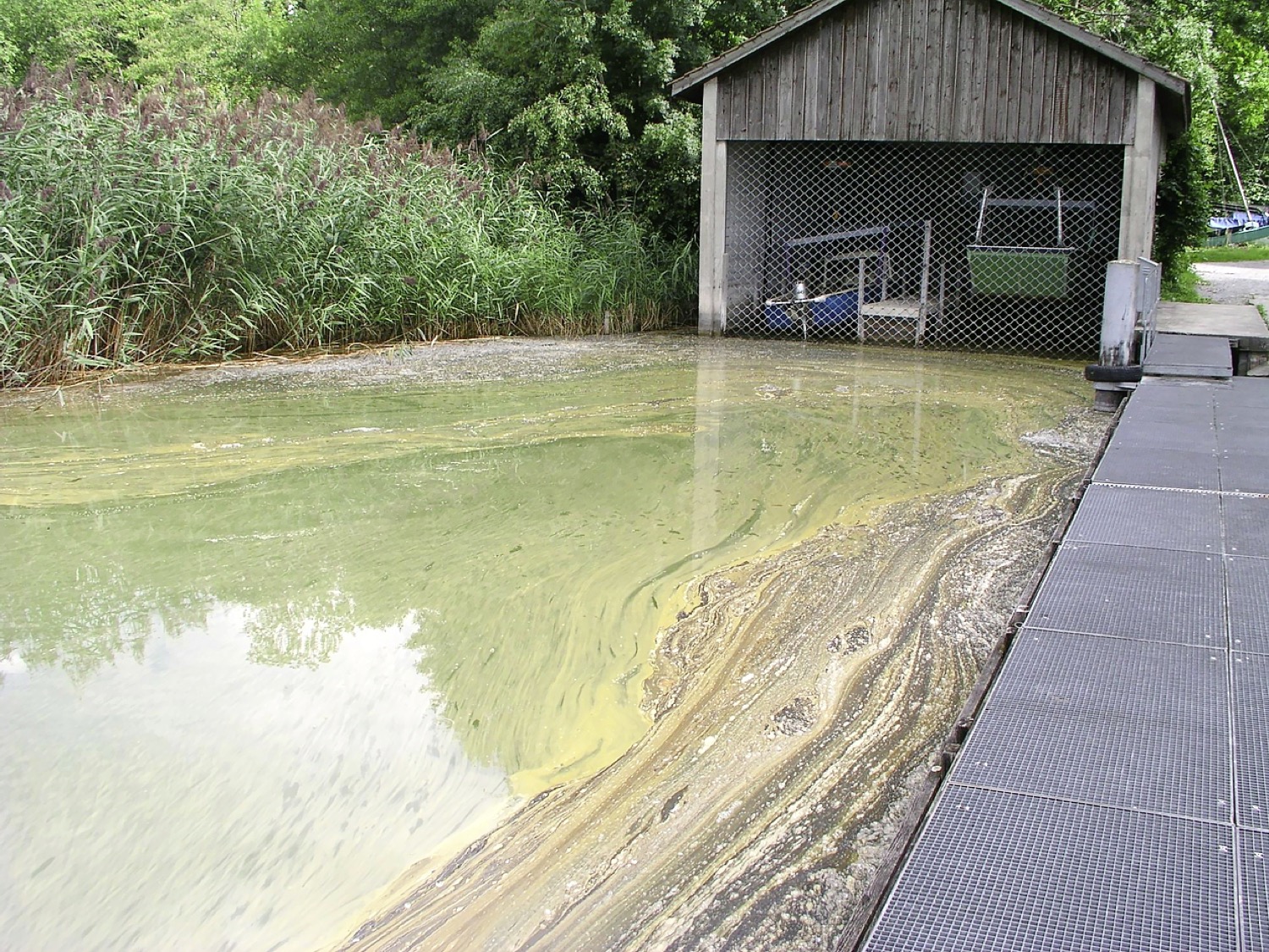 Blaualgen sind in unseren Gewässern verbreitet und können das ganze Jahr über auftreten. Bei guten Bedingungen können sie sich explosionsartig vermehren und giftige Stoffwechselprodukte bilden. Das Verschlucken von Wasser mit Blaualgen kann für Menschen und Hunde gesundheitsgefährdend sein. Nach dem Kontakt können Haut- und Schleimhautreizungen oder Vergiftungssymptome auftreten. Für Hunde können Blaualgen sogar lebensgefährlich sein.