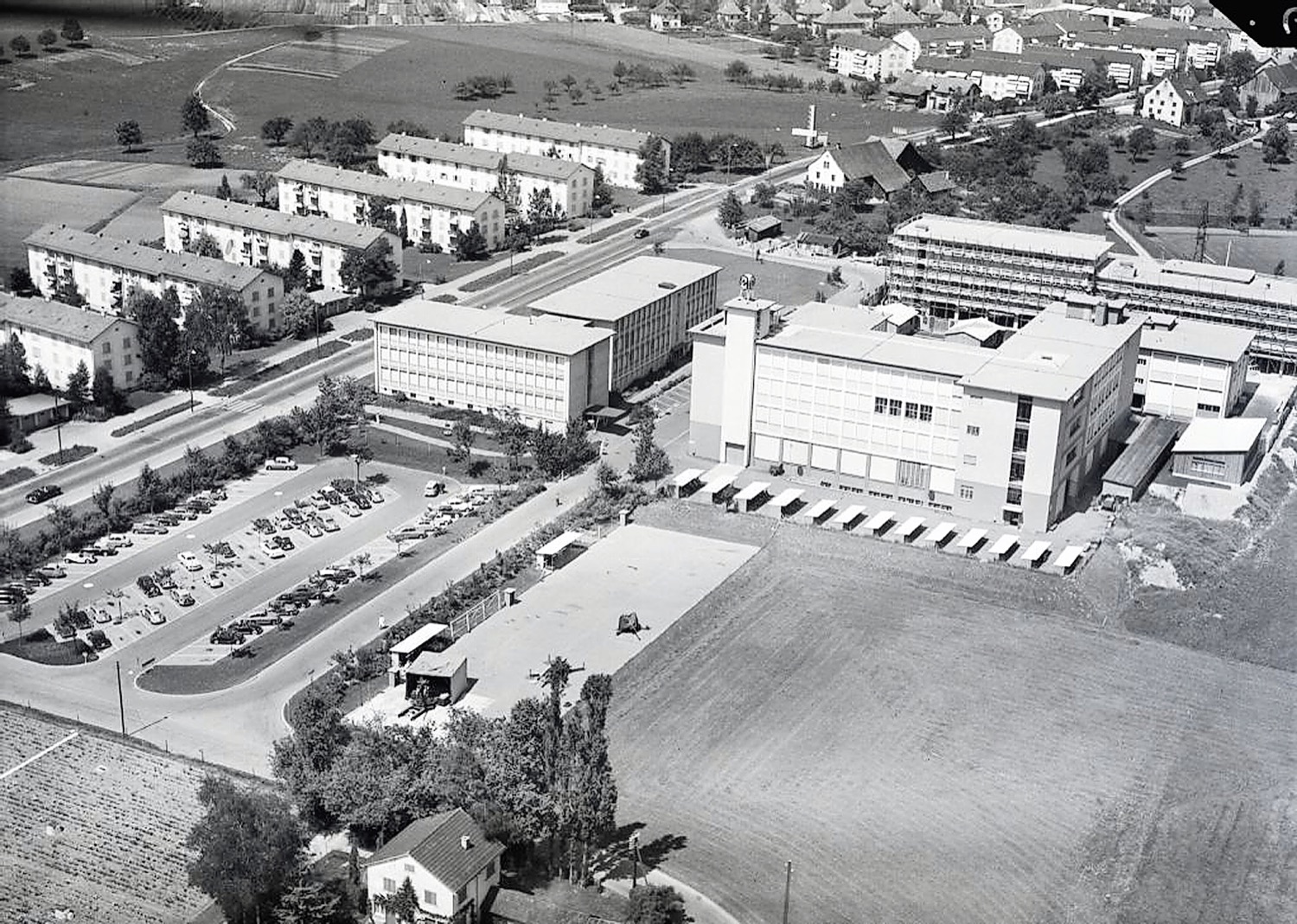 Also bedeutet dies, dass das Gelände der Ruag gehörte. Dieser staatlich kontrollierte und aus den Produktionsbetrieben der Schweizer Armee hervorgegangene Konzern betreibt hier den Firmenzweig Beyond Gravity, welcher wiederum zur Ruag International gehört. Früher gehörte die Firma Oerlikon-Contraves, welche die Überbauung in den 1960er-Jahren erstellte.