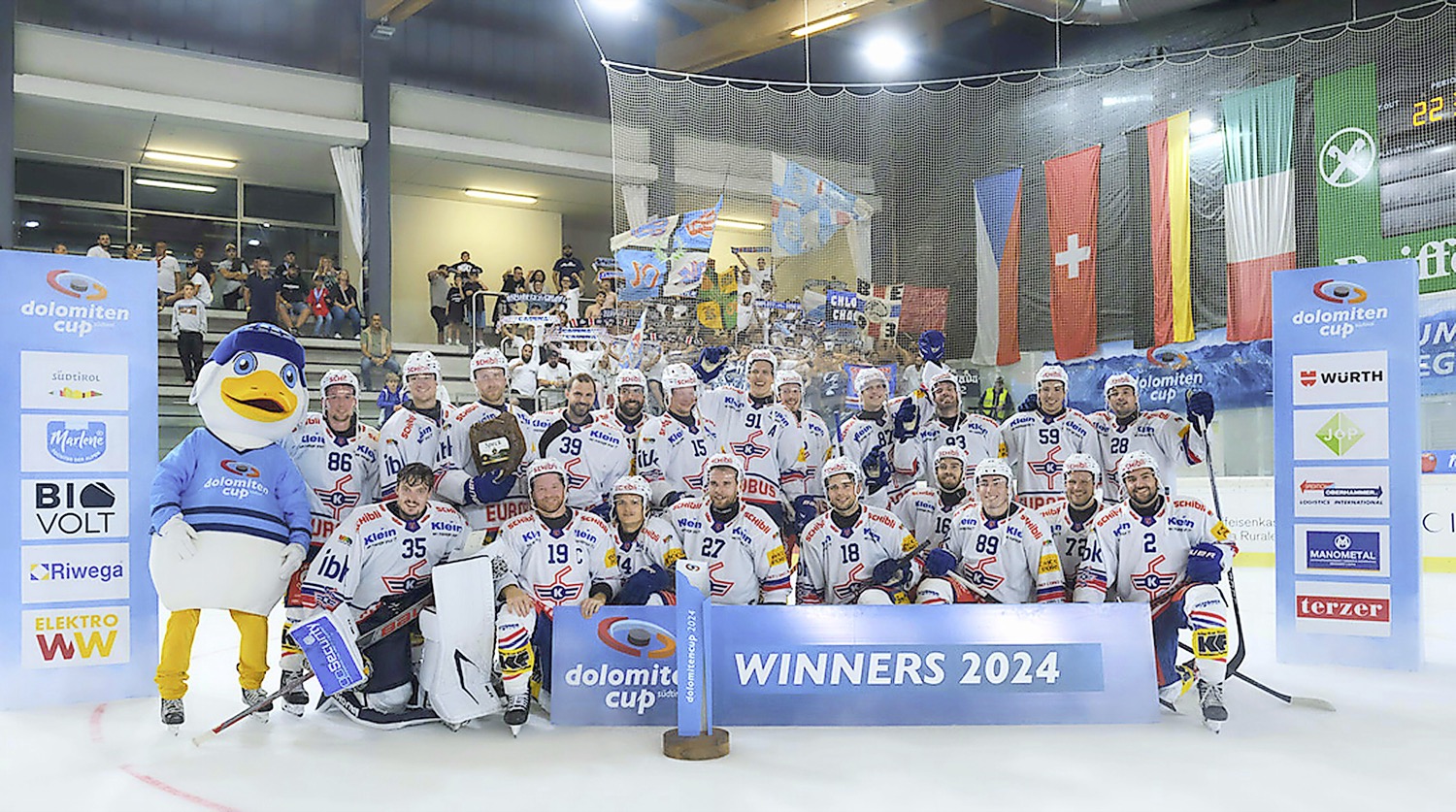 Es war im fernen Sommer 2015, als der EHC Kloten erstmals zum Dolomitencup gekommen war und sofort den Jackpot geknackt, sprich: den Titel gewonnen hatte. Neun Jahre dauerte es danach, bis die Zürcher wieder den Weg ins Südtiroler Unterland fanden – und bei ihrem Comeback eindrucksvoll die 100-Prozent-Quote bestätigten. Der Siegerpokal wanderte auch dieses Mal in die Hände von Kapitän Steve Kellenberger, der schon beim Triumph 2015 mit dabei gewesen war. (dj.)