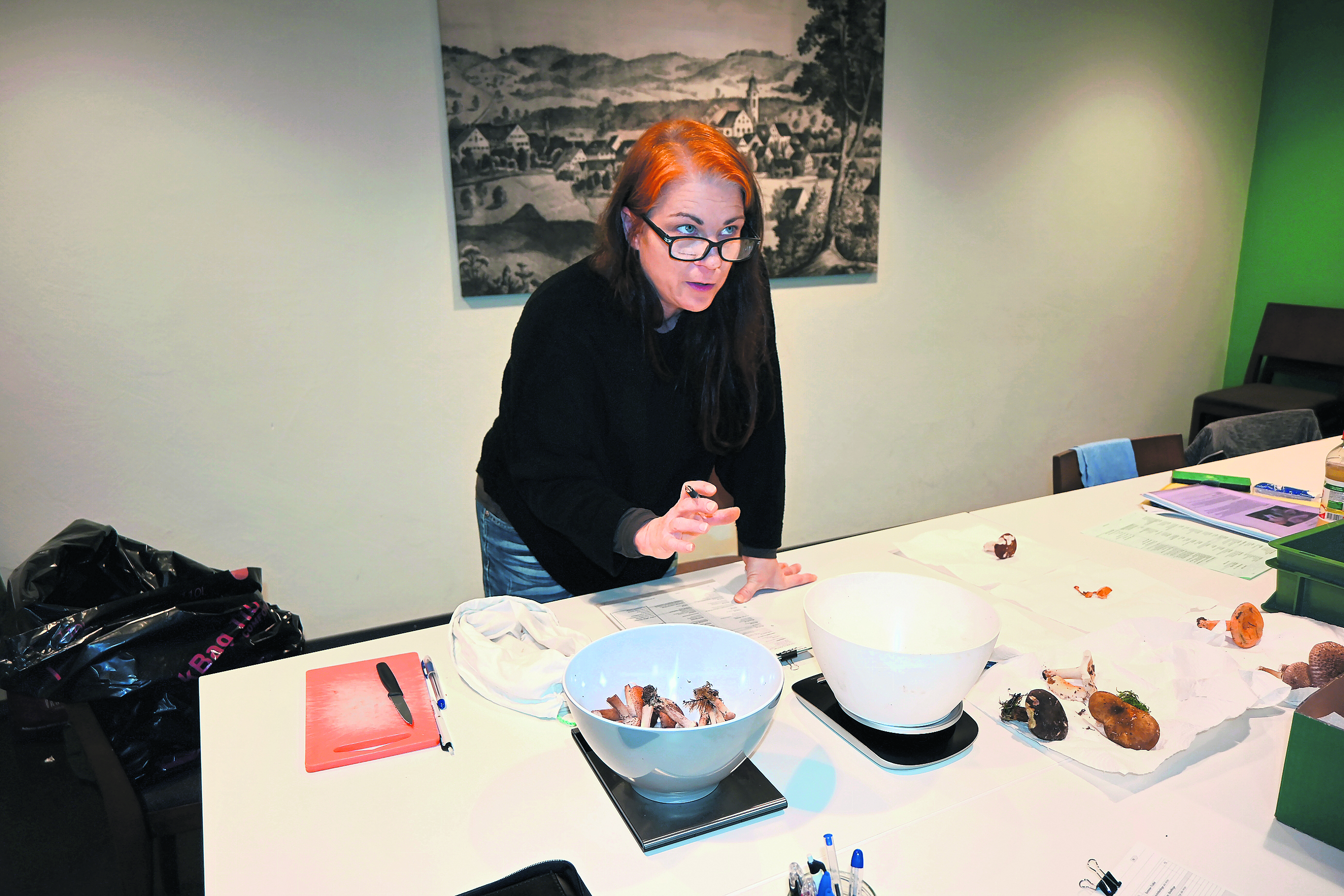 Nach vielen Wochen fiel an diesem Oktobertag endlich etwas Regen. Auf dem Tisch im Atrium der Evangelisch-reformierten Kirchgemeinde Kloten hat Jeannine Bollinger alles für die Pilzkontrolle vorbereitet: Waagen, Messer, Lupe und Kontrollblätter, die bei jeder Pilzkontrolle ausgefüllt und Ende Jahr an das Kantonale Labor zur Auswertung geschickt werden.
