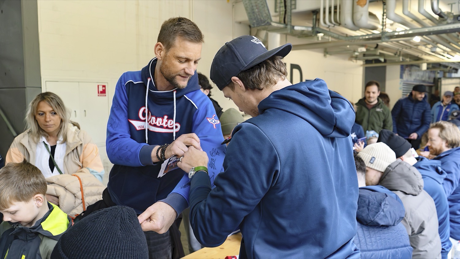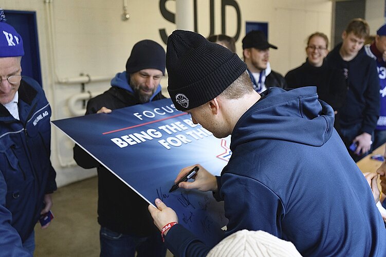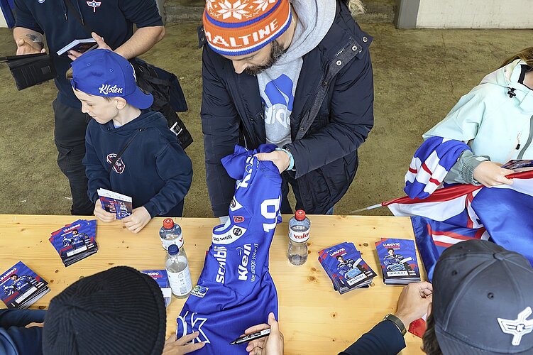 Nach der Abschiedszeremonie folgte eine schier nicht enden wollende Autogrammstunde. Alle, gross und klein, streckten ihre Fühler nach begehrten Mitbringseln aus. Diese reichten von Autogrammkarten, Selfies, Sammelstickern bis hin zu von Spielern getragenen Handschuhen oder Warm-up-Trikots. Auch Jubiläumsdosen anlässlich des 90-jährigen Bestehens des Klubs und Legendentrikots gab es.