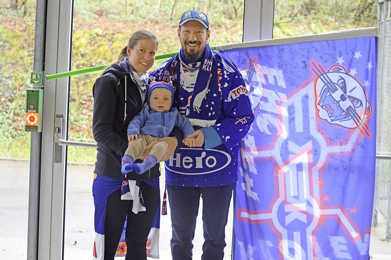 Michael und Jasmin Kolb reisten extra aus Schaffhausen an. Immer mit dabei: der acht Monate alte Dario Mats. «Mein Vater nahm mich 1996 das erste Mal mit an einen Match des EHC Kloten. Seither bin ich regelmässig dabei – früher auch an Auswärts-, heute eher an Heimspielen», freut sich Michael Kolb über den Erfolg des Klubs.