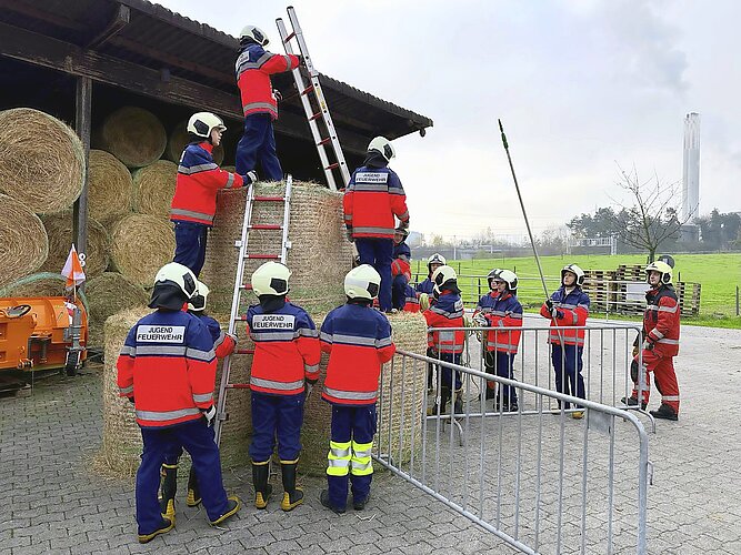 Technisches Verständnis war am Pionierposten gefragt, wo ein Auto mittels zweier Seilzugapparate über eine selbst gebaute Rampe gezogen wurde. Ein Funkparcours vermittelte die Grundlagen der Kommunikation im Einsatz. In der Herzogenmühle absolvierten die Jugendlichen zudem die Lektionen «Leiter», «Lüfter» und «Sanitätsdienst». Unter anderem wurde ein verrauchtes Treppenhaus entraucht und die Versorgung einer stark blutenden Wunde geübt. Eine spielerische Komponente bot die Übung «Der Boden ist Lava» auf der Beef-Ranch, bei der die Züge mithilfe von Seilen und Steckleitern einen Weg über Strohballen konstruieren mussten.