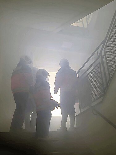 Erschwerte Sicht: Es wurde ein verrauchtes Treppenhaus entraucht.
