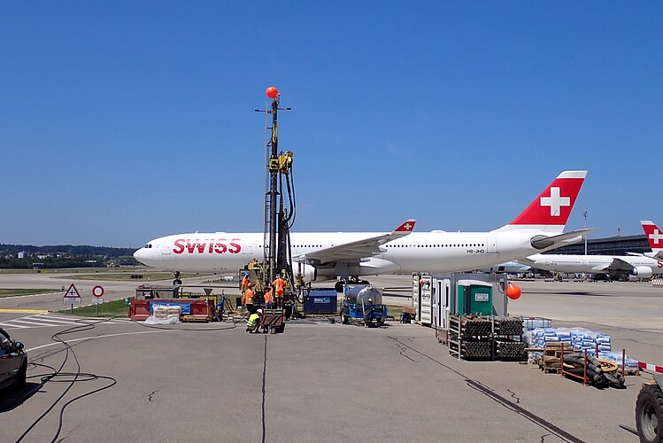 Die Flughafen Zürich AG plant, eine unter dem Flughafengelände gelegene eiszeitliche Rinne als Wärme- und Kältespeicher zu nutzen. Ein erster Testbrunnen hat positive Ergebnisse geliefert. Nun wird ein zweiter Testbrunnen gebaut.