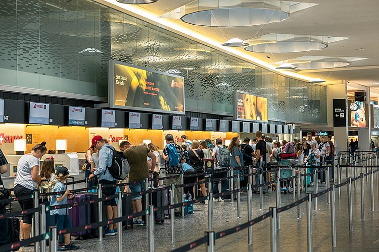 Die Sommerferien gehören am Flughafen Zürich zur Zeit im Jahr mit dem grössten Passagieraufkommen. Entsprechend intensiv war der Betrieb für alle beteiligten Unternehmen am grössten Flughafen der Schweiz. Insgesamt reisten im Juli rund 3,1 Millionen Passagiere über den Flughafen Zürich (–1% gegenüber 2019, also vor der Pandemie). Der Spitzentag war der 26. Juli mit 111 000 Passagieren. Der Allzeit-Tagesrekordtag stammt aus dem Sommer 2019 und liegt bei 115 000 Passagieren.