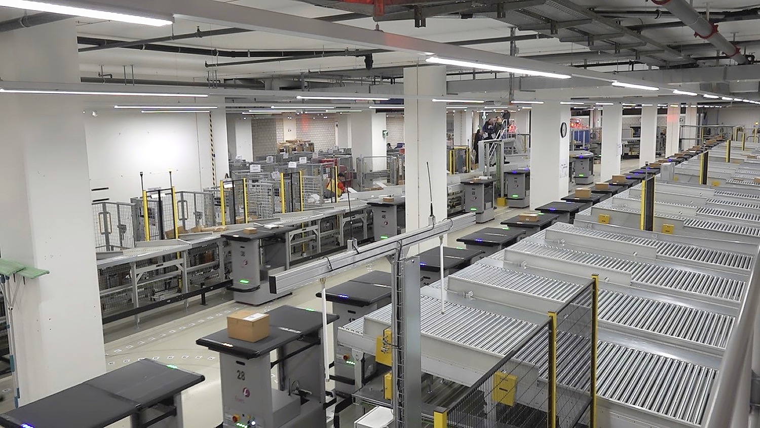 Sie erinnern ein bisschen an die Minibar-Wägelchen in den Zügen, sind aber vergleichsweise flink unterwegs. Im stetigen Kreislauf durch die Sortierhalle, manchmal schert eines aus, nimmt einen direkteren Weg und fügt sich wieder ein.