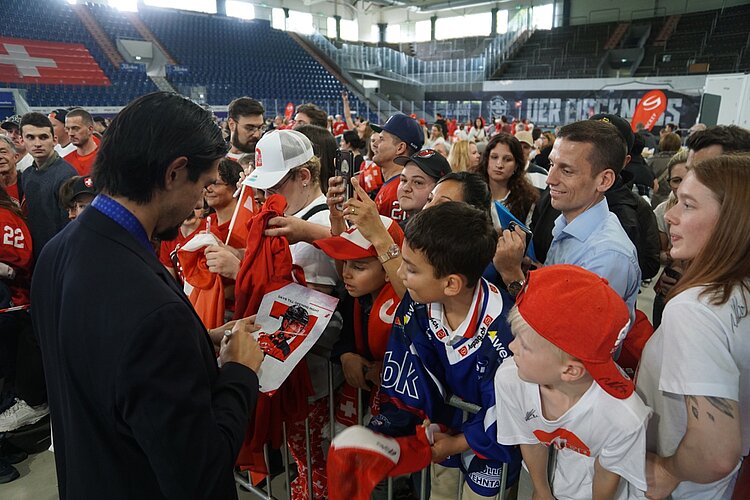 Ganz anders vor der Bühne: Hunderte Fans sind in den Klotener Eishockeytempel gepilgert, um ihre Nati gebührend zu begrüssen, und freuen sich, die schönsten Momente noch einmal auf der Leinwand Revue passieren zu lassen, den Cracks und dem einst oft kritisierten Trainer Patrick Fischer zuzujubeln und zum Schluss ein Autogramm auf einem Käppi, einem Leibchen oder was auch immer zu ergattern. Zu ihnen gehören Severine, Milena, Jalina und Corinne. «Wir sind stolz auf sie», finden die vier, die extra aus Bäretswil angereist sind und sich für die Autogramme schon mal in der Nähe der Abschrankung postieren.