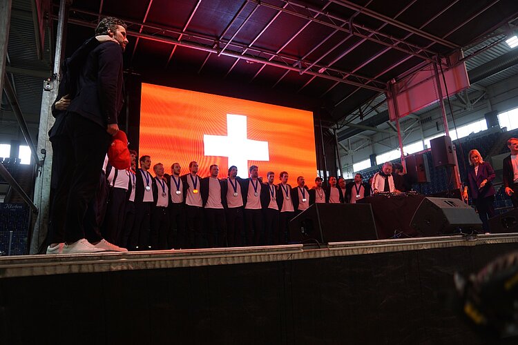 Inzwischen stellen sich unter Namensaufruf und Applaus Mannschaft und Staff auf der Bühne auf. Obwohl sie keinerlei Grund haben, sich zu schämen, stehen sie am hinteren Rand und bewegen sich auch nach der Aufforderung der Moderatorin nur ein bisschen nach vorn. Das tut dafür die «Stubete Gäng»: Ihren «Richi» hat das Team zu seinem aktuellen WM-Song bestimmt. (An der WM 2023 war es «Göschene–Airolo» von derselben Innerschweizer Gruppe.) Danach ringt der früher oft kritisierte Trainer Patrick Fischer noch einmal nach Worten, die das Gefühl beschreiben, so knapp gescheitert zu sein. «Wir geben nicht auf. Jetzt brennt es im Herzen, aber es macht uns nur noch stärker.» Und die Menge fühlt mit.