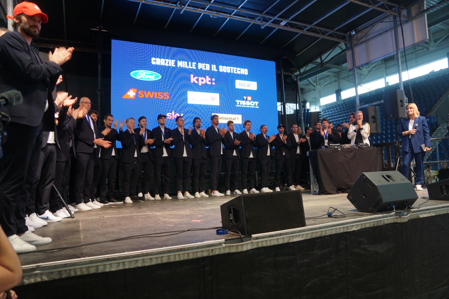 An der WM in zwei Jahren brauchen sie dann kein Flug-, sondern höchstens ein SBB-Ticket. Diese Eishockey-Weltmeisterschaft 2026 findet nämlich in Zürich und Fribourg statt – wofür die Schweizer Nati mit ihrem Auftritt an dieser beste Werbung gemacht habe, wie auf der Bühne betont wird.