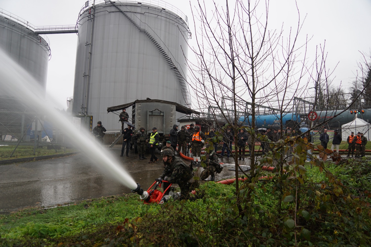 Eine Rettungskompanie hat derweil eine 1,2 Kilometer lange Wasserleitung von der Glatt ins Tanklager Rümlang gelegt. Dort führt sie das Löschen bei einem Grossbrand vor. Ein Sanitätszug betreibt im ehemaligen Hauptsitz der Flughafen Zürich AG eine Sanitätshilfsstelle für Verletzte.