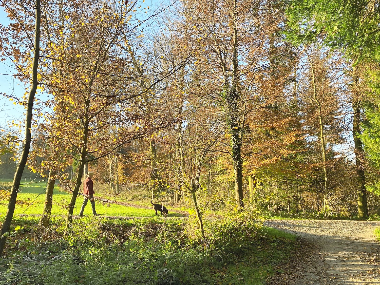 War es das strahlend schöne Wetter oder der angekündigte Temperatursturz mit Schnee bis in die Niederungen, was vorher so viele Menschen in die Natur lockte? Vermutlich beides. Fast schon kitschig schien die Sonne am tiefblauen Himmel durch die bunten Blätter an den Bäumen. Beim leichtesten Windstoss flogen Blätter wie später die Schneeflocken durch die Lüfte.
