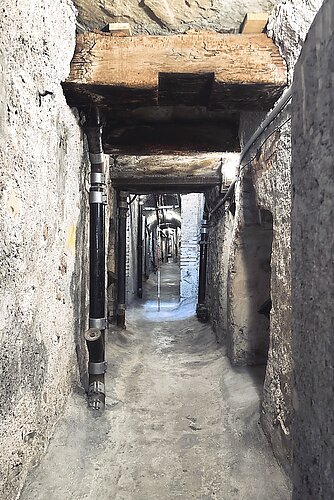 Steht man im steinigen Kanal und lässt sich die Funktion dieser historischen Baute durch den Kopf gehen,fasziniert und stösst es zugleich ab.Man hat wirklich einst einen Strom anFäkalien zwischen den Häusern fliessen lassen. Fast glaubt man den Geruch in der Nase zu vernehmen. Vermutlich reicht die Vorstellungskraft nicht annähernd aus, um den tatsächlichen Duft zu erahnen. Wie viele Menschen wohl in diesemGraben ihr braunes Grab gefundenhaben? Spukt vielleicht sogar der eine oder andere Geist hier unten herum? Zeichnungen deuten aber darauf hin, dass niemand so leicht in den Graben plumpsen konnte. Da wurde schon auf Sicherheit geschaut. Aber es passt allemal zu Halloween.