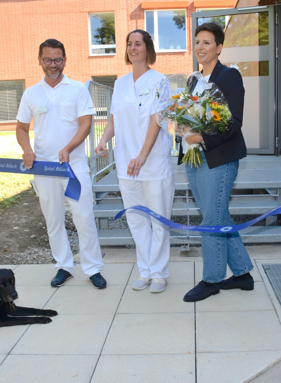 Im Zürcher Unterland leben im Vergleich zu den übrigen Regionen des Kantons überdurchschnittlich viele ältere Menschen. Zusammen mit der wachsenden Bevölkerung und den veränderten Lebensgewohnheiten führt dies zu einem stark steigenden Bedarf an professioneller und bedürfnisgerechter Betreuung am Lebensende. Seit 2015 hat das Spital Bülach eine stationäre Palliativabteilung, die bisher im klinischen Akutmedizintrakt untergebracht war. Nach einer zweijährigen Planungsphase wurde im letzten halben Jahr im Spitalpark aus mehreren hölzernen Modulbauten ein gut gedämmter Pavillon als Kompetenzzentrum Palliative Care gebaut, das auch als Trakt M bezeichnet wird. «Das Zürcher Unterland ist in Behandlung, Pflege und Betreuung schwerstkranker Menschen und Begleitung ihrer Angehörigen unterversorgt», sagte der Leitende Arzt Mirko Thiene, der das Zentrum führt. Am Mittwoch vergangener Woche gab es im Rahmen eines Medienanlasses eine kleine Eröffnungszeremonie mit «Ribbon Cutting», dem Durchschneiden des symbolischen Bandes, bei der Thiene und die Pflegeleiterin Manuela Hitz besonders der Spitaldirektorin Doris Benz stellvertretend für die Unterstützung dankten.
