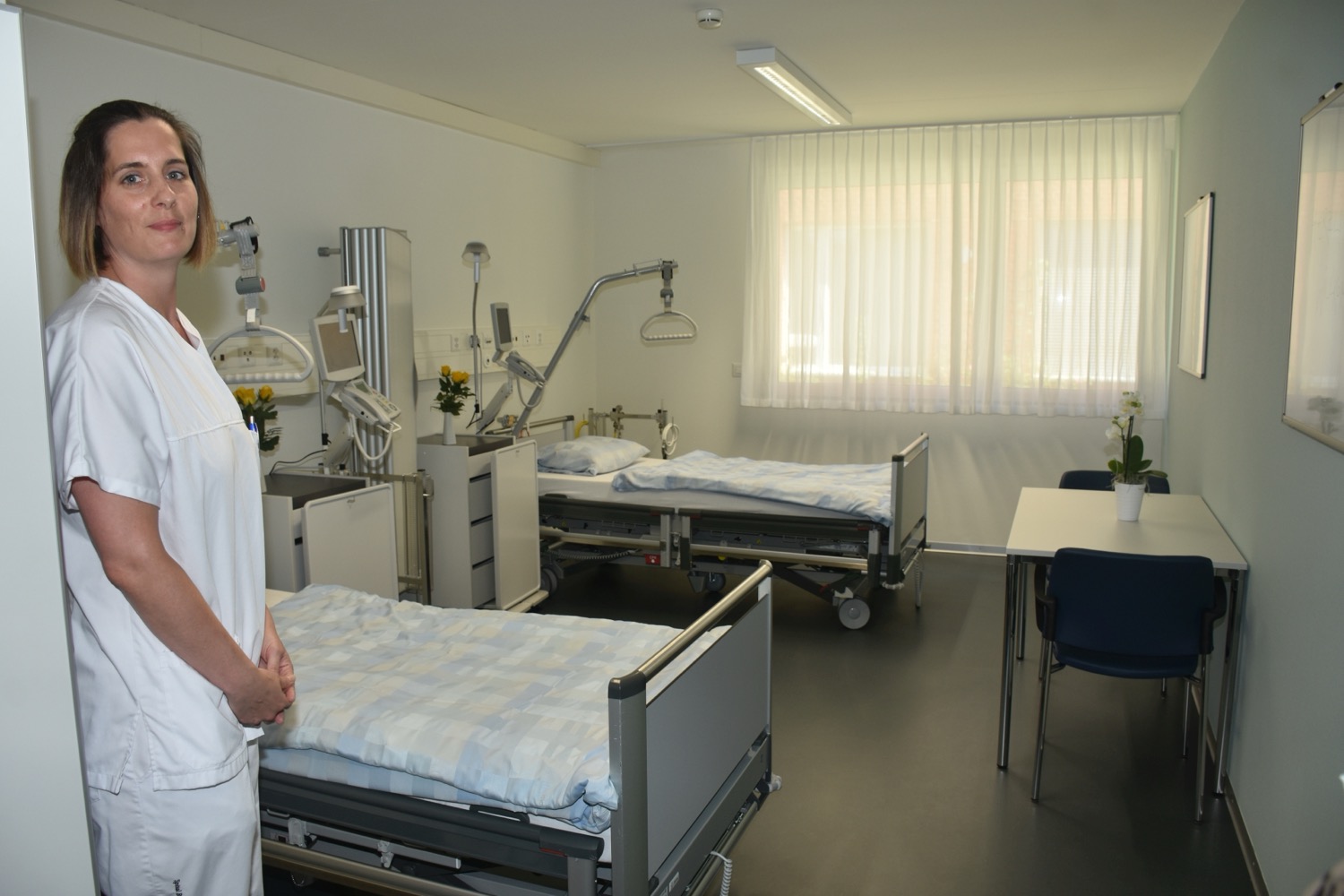 Pflegeleiterin Manuela Hitz merkte an, dass allein das Kernteam aus acht verschiedenen Berufsgruppen besteht und es ein erweitertes Team mit Ernährungsberatung, Seelsorge, Sozialdienst und Physiotherapie gibt. Zudem bieten Freiwillige den Patienten Hunde-, Mal- und Musiktherapie an.