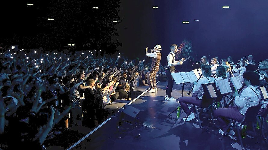 Die erste gemeinsame Probe mit Dodo fand am Donnerstag vor dem Konzert im Walliseller Schulhaus Bürgli-Mitte statt. Hochkonzentriert waren die jungen Musikerinnen und Musiker bei der Sache. Flurin Hutzli, Kornettist: «Ich bin schon sehr lange im Orchester und habe das letzte ‹Glattastic›-Konzert leider verpasst, darum freue ich mich umso mehr, diesmal dabei zu sein.» Die Vorfreude war auch bei Dodo gross: «Beim letzten Mal hat es schon richtig gut funktioniert und jetzt geht es ins Hallenstadion – wir werden den Laden auseinandernehmen!»