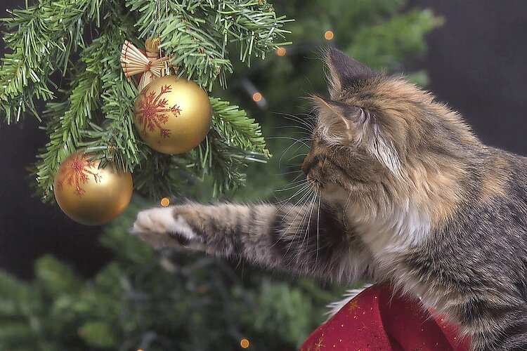 Ein Christbaum in der guten Stube birgt viele Gefahren für Hund und Katze: verschluckte Tannennadeln, Trinken des Wassers aus dem Christbaumständer, Fressen von Lametta oder anderer Weihnachtsdekoration sowie Verbrennungen durch Wachskerzen. Wer als Tierhalterin oder Tierhalter trotzdem nicht auf einen Weihnachtsbaum verzichten möchte, dem wird empfohlen, sich einen künstlichen Baum zu kaufen, diesen gut zu sichern und mit künstlichen Kerzen sowie katzensicherem Baumschmuck zu dekorieren. Auf Lametta ist dabei zu verzichten. Eine weitere tiergerechte und kreative Lösung: das Verwenden von natürlichen, für Tiere ungiftigen Düften, die weihnächtlich wirken, von den meisten Vierbeinern jedoch gemieden werden.