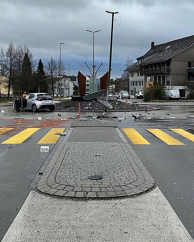 Der umgefahrene Inselschutzpfosten hingegen flog wegen des Zusammenpralls über den Kreisel und verletzte auf der anderen Seite ein 12-jähriges Mädchen, dass sich auf dem Nachhauseweg von der Schule befand. Das Mädchen und der Autofahrer wurden leicht verletzt in Spitäler gefahren. Die Kantonspolizei sicherte vor Ort Spuren, befragte zusammen mit der Kommunalpolizei RONN mehrere Auskunftspersonen und stand wegen der verletzten Primarschülerin mit der Schule im Kontakt. Aufgrund erster Anzeichen besteht die Möglichkeit, dass ein medizinisches Problem beim Fahrer zum Unfall geführt hat.