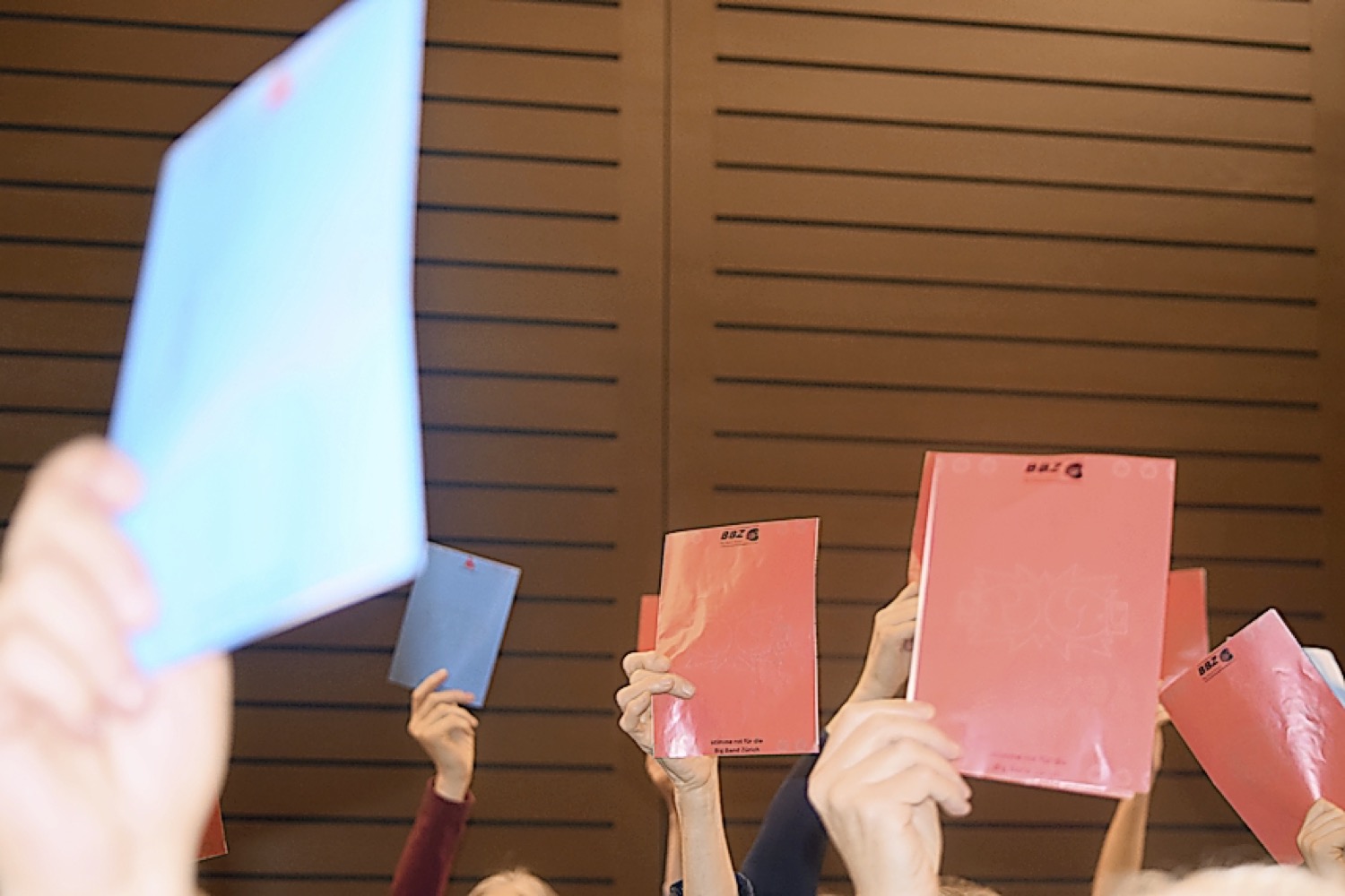 Abgestimmt wird mit roten und blauen Karten.