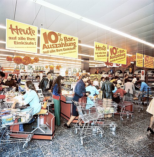 Der erste Teil der Ausstellung «Konsumwelten. Alltägliches im Fokus» im Landesmuseum Zürich nimmt die Geschichte der wichtigsten Verkaufsorte in den Blick. Diese hätten sich ab Mitte des 19. Jahrhunderts im Zuge wirtschaftlicher und gesellschaftlicher Entwicklungen von der Industrialisierung bis zur Digitalisierung vervielfältigt, teilt das Museum mit.