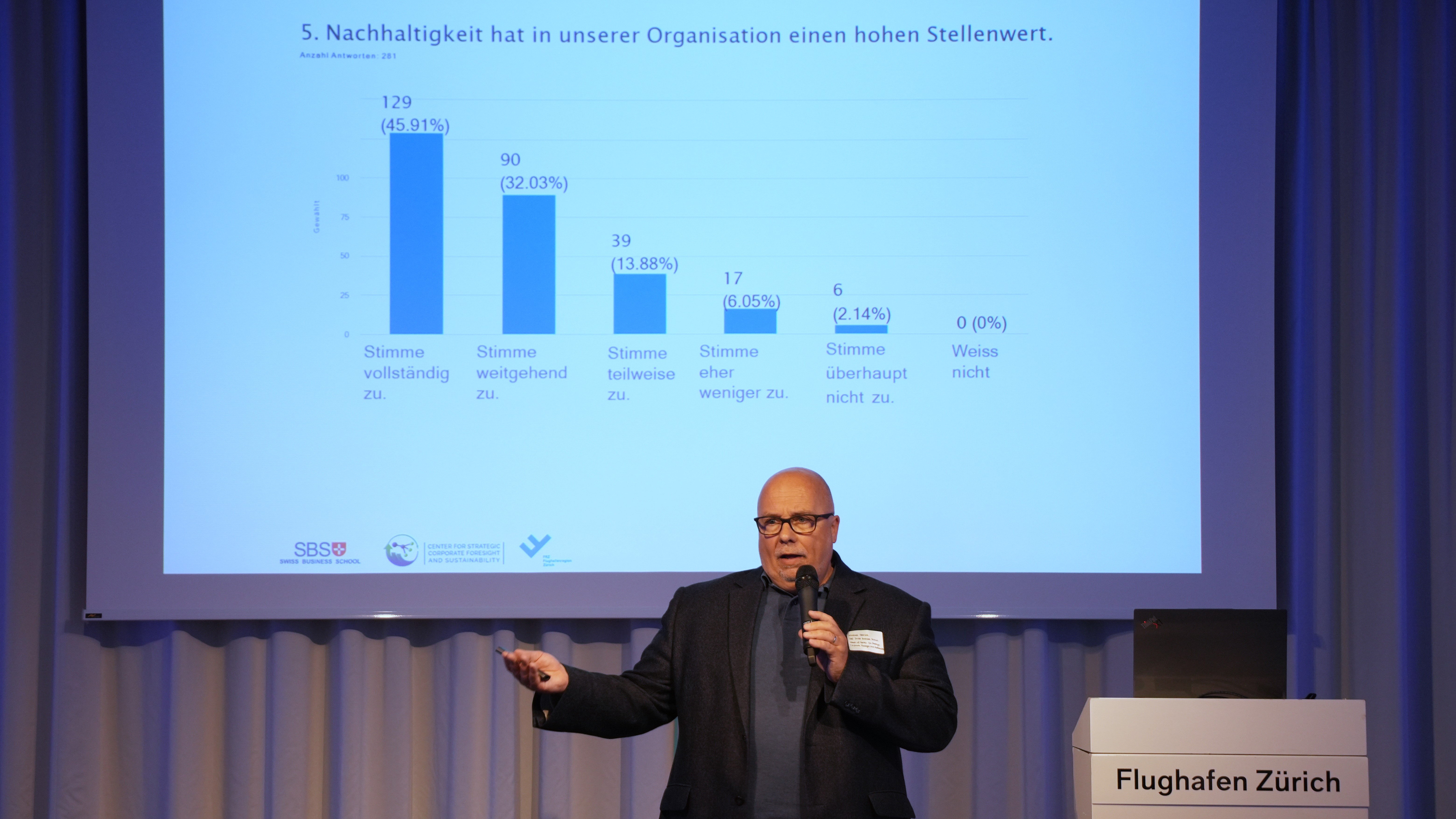 Eine gemeinsame Nachhaltigkeitsstudie von SBS Swiss Business School und dem Netzwerk Flughafenregion Zürich (FRZ) hat gezeigt: Nachhaltigkeit ist in beinahe allen befragten Firmen wichtig. Im Rahmen eines vom «Sustainability Circle» FRZ ausgerichteten Events, das am 8. April im Flughafen stattfand, wurde die Nachhaltigkeitsstudie vorgestellt. Dr. Michael Gerlich, Leiter des Center for Strategic Corporate Foresight and Sustainability an der SBS Swiss Business School, erläuterte die Ergebnisse der Studie vor Unternehmern aus der Region. Die Befragung von Unternehmen im Kanton Zürich zum Thema Nachhaltigkeit, an welcher über 300 teilnahmen, brachte überraschend positive Ergebnisse hervor. Es wurde deutlich, dass Nachhaltigkeit für die befragten Unternehmen ein wichtiges Anliegen darstellt und ein zunehmender Druck seitens der Konsumenten, der Auftraggeber und des Gesetzgebers zu nachhaltigem Handeln führt. Zudem wurde ein sowohl aktuell hoher als auch zukünftig steigender Bedarf an Unterstützung bei der Planung und Umsetzung von Nachhaltigkeitsmassnahmen seitens der KMU sowie der Grossunternehmen geäussert.