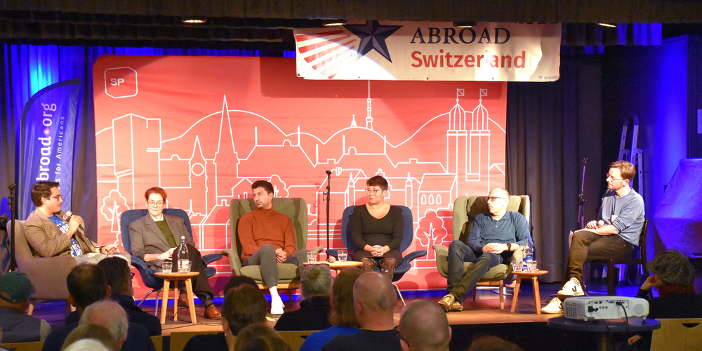 Den Anfang der Veranstaltung machte um 22.30 Uhr eine Podiumsdiskussion. An dieser nahm neben Apolonio Huerta von den Democrats Abroad Zurich, auch Sozialanthropologin Darcy Alexandra, SP-Nationalrat Fabian Molina, Englischlehrerin Elena Schaef und Jonathan Slapin, Professor für politische Institutionen und europäische Politik an der Universität Zürich, teil.