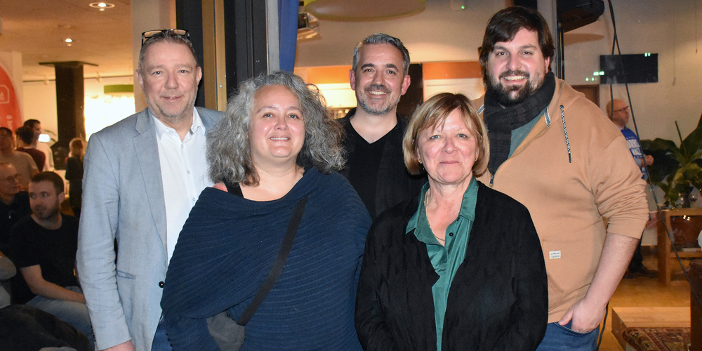 Nach 1 Uhr lichteten sich zwar langsam die Reihen, weil wohl einige das Kissen lockte, doch eine stattliche Anzahl Menschen wollte weiter durchhalten. Dazu gehörte eine Gruppe Stadtzürcher Gemeinderätinnen und Gemeinderäte. Martin Bürki (FDP), Liv Mahrer (SP), Ivo Bieri (SP), Sofia Karakostas (SP) und Sven Sobernheim (GLP) hofften auf eine spannende Wahlnacht und waren sichtlich guter Laune – trotz vorgerückter Stunde.