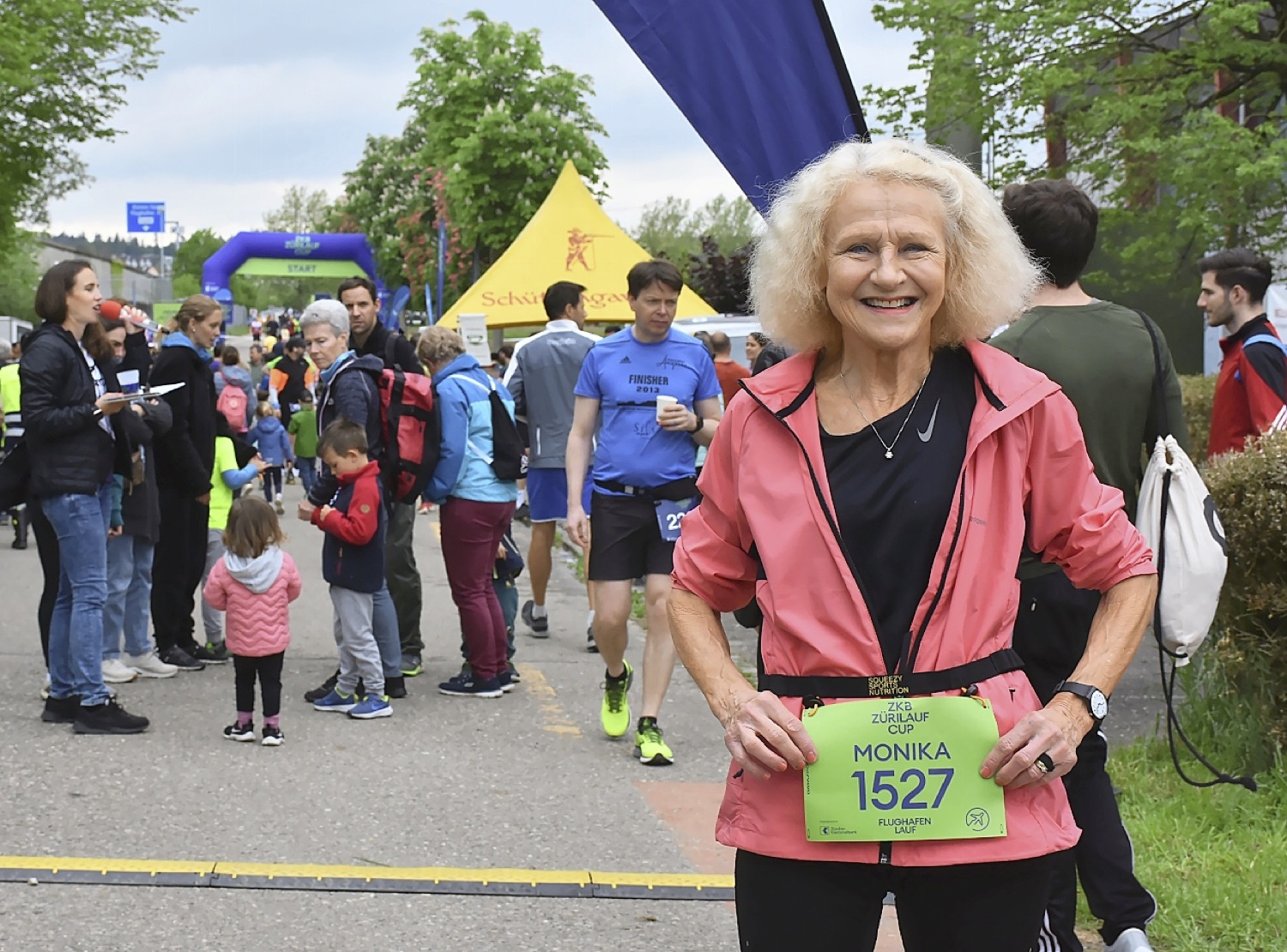 Kühle Temperaturen und die Strecke rund um den Flughafen mit lediglich 40 Höhenmetern waren Topbedingungen für einen schnellen Lauf. «Die Zeit spielt bei mir keine Rolle, ich will einfach möglichst geschwind ins Ziel», sagte die 75- jährige Monika Stähli-Peter aus Wettingen. Als ihr Mann Gustav vor 14 Jahren pensioniert wurde und der Arzt ihm geraten hat, sich sportlich zu betätigen, hat auch sie mit dem Laufen angefangen. Mittlerweile läuft sie nach Möglichkeit jeden Tag zwischen 5 und 20 Kilometer. «Das Laufen ist das, was uns in unserer komplexen Lebenssituation gerade hält», sagte das Ehepaar. «Heute muss meine Frau alleine laufen, ich habe mir das Knie verrenkt», sagte ihr Mann Gustav, der sie dafür bestens betreute. Die Seniorin vergass auf den 17 Kilometern ihre Alltagssorgen und kam nach 1:37 Stunden glücklich ins Ziel.