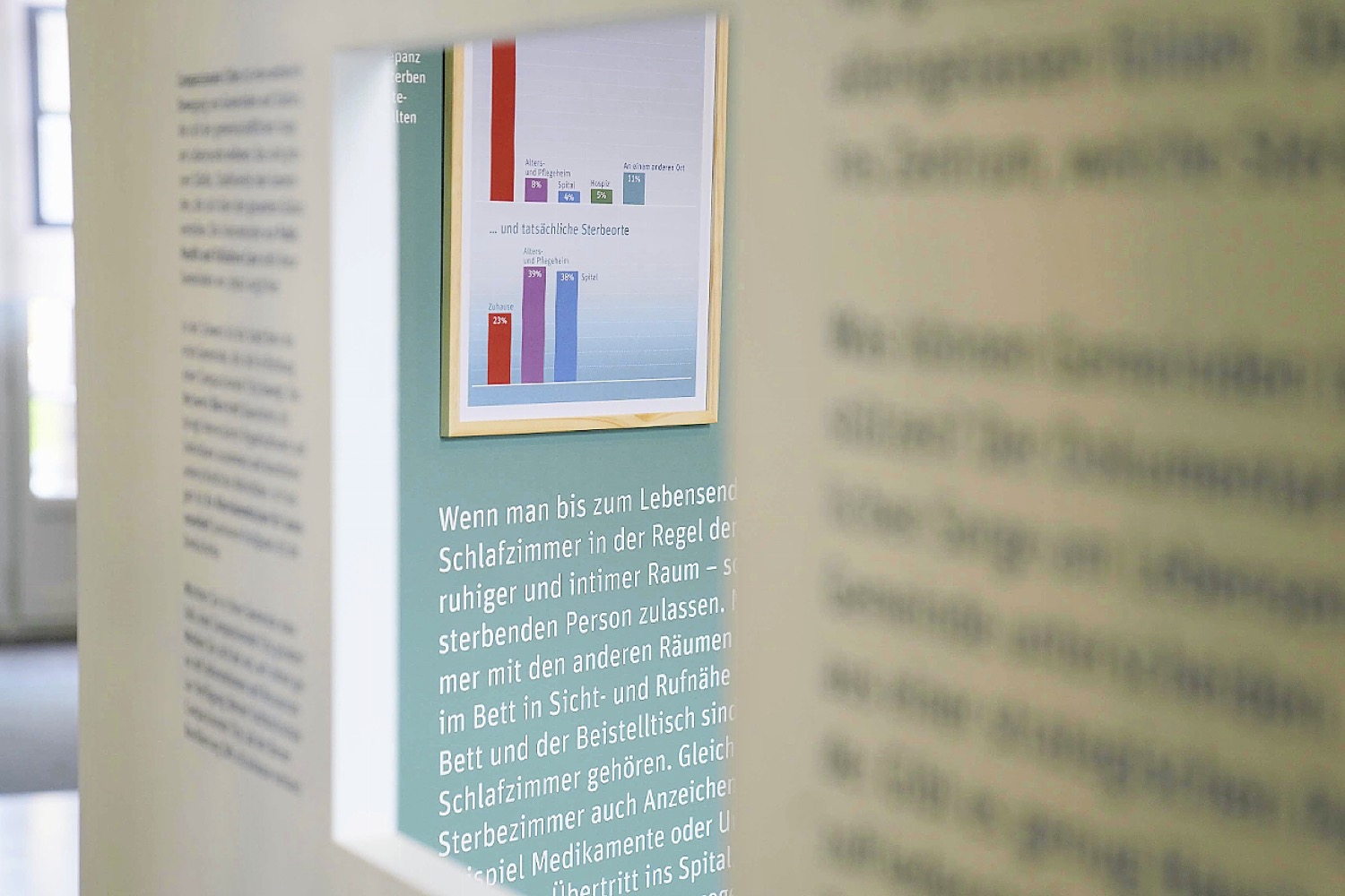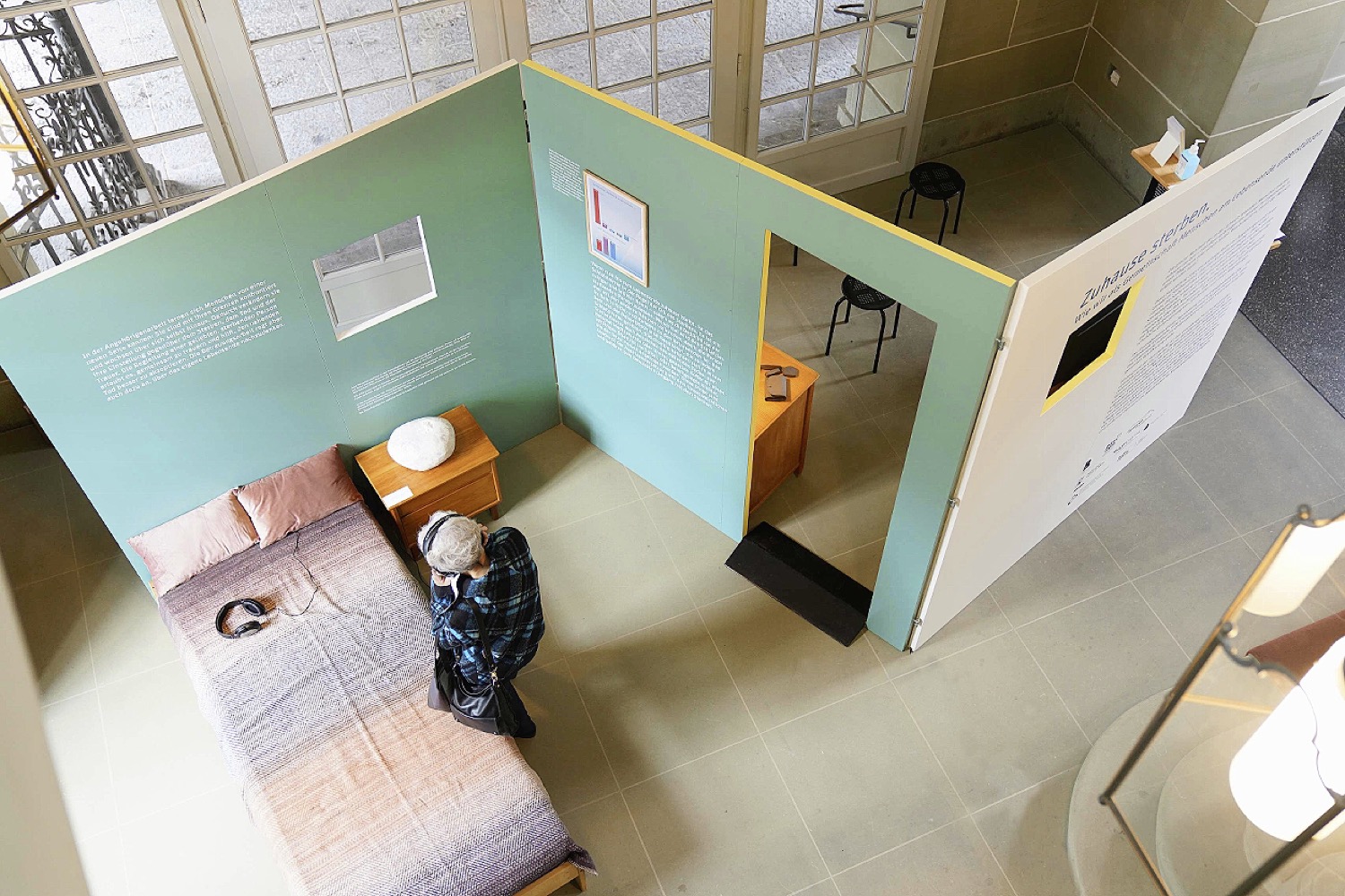 Die grosse Mehrheit der in der Schweizlebenden Menschen möchte die letzteLebensphase zuhause verbringen – trotzdem sterben die meisten in einem Pflegeheim oder einem Spital. Was braucht es, damit der Wunsch nach «Zuhause sterben» erfüllt werden kann? Die Ausstellung von Joy Slappnig und Claudia Michel entstand im Rahmen des Projektes «Compassionate City Lab der Berner Bevölkerung», ein von der Gesundheitsförderung Schweiz und anderen Stiftungen und Stellen finanziertes Innovationsprojekt, wie «palliative zh+sh» in einer Mitteilung schreibt.