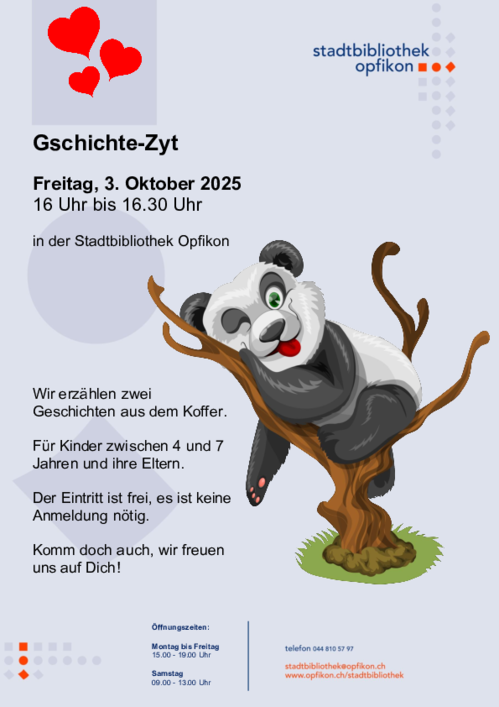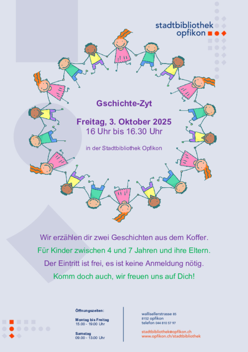 Ab dem 25. September 2025 ist es soweit! Das nächste Gschichtli auf dem Gschichtli-Weg in Opfikon wird freigeschaltet.Weiterlesen -