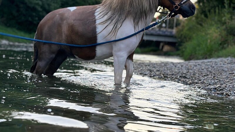 Mit Glück konnte man am Dienstag vergangener Woche die Streichelzoo-Tiere in der Glatt baden sehen. Der renaturierte Flusslauf mit Kiesbänken und Zugängen zum Wasser machte es möglich. -